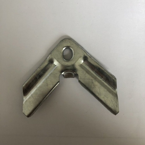 2.半成品压制成型,在第一阶段制作的基础上,通过第二次冲压,使角码边角上翻,中间出现半圆形浅槽,槽的深度要适中,避免出现太浅或者太深已至压坏角码的情况。